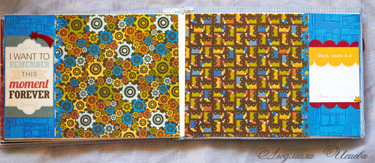 Альбом небольшого размера 14х20. Немного промахнулась с переплетом, не было у меня пивного картона и я сделала на бумаге плотностью около 300, не понравилось, что страницы не такие плотные как с картоном. Вот такой подарочек ожидал моего сына по мимо игрушек. Степану понравился альбом, сии и каждый день его пересматривает.