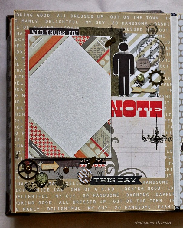 Ух, вот такую я работу проделала. Если честно - это первый альбом, которым я очень горжусь, мужская тема всегда сложная для меня, а об альбоме... я и не мечтала даже, что когда-нибудь решусь на него, а тут вот звезды так сложились))) А бумага Терезы Коллинз просто шикарная, как же она мне понравилась, теперь хочу много денег и скупить все коллекции)))